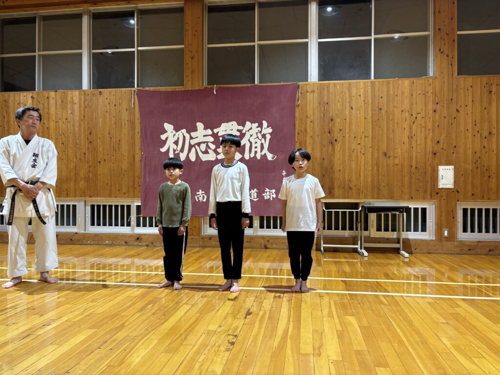 最初はおとなしくなれたら活発になる子、最初から活発な子、学校も違う子供たちですが、稽古で切磋琢磨して成長してくれたらと思います。