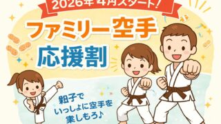 雑談日記 2026年4月スタート!「ファミリー空手応援割」 翔友会では、2026年4月より新しい割引制度をスタートします🥋✨その名も「ファミリー空手応援割」です。通常、月謝は1人4,000円ですが、お子様が道場生の場合、お父さん・お母さんは月謝1,000円で稽古に参加することができます。空手は年齢に... 2026.04.01 雑談日記